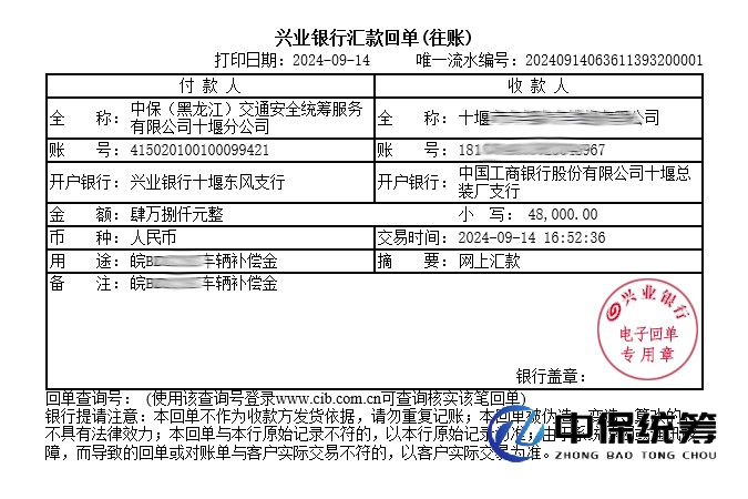 2024年8月12日9:25,統籌車輛皖BD***7在十堰市張灣區車城路路段行駛時,與小轎車鄂CA***W發生碰撞,造成雙方車輛受損。我公司第一時間安排查勘人員到達現場處理統籌事項。我公司安排專人全程跟蹤,經我公司有效溝通,統籌補償共計:98000元整??蛻魧ξ夜镜氖酆罄碣r專業及賠款速度均表示非常滿意,對我們中保統籌公司很認可,對我公司的服務質量給予了充分的肯定。